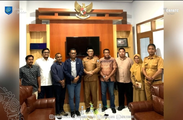 DISKOMINFO TERNATE - Kepala Dinas Komunikasi, Informatika dan Persandian Kota Ternate, H. Damish Bashir, SE., ME didampingi Sekretaris Dinas, Hartati Pora, S.Sos dan Kepala Bidang Informatika, M. Tauhid Salam, S.Kom menerima Kunjungan Kerja (Kunker) Dewan Perwakilan Rakyat Daerah (DPRD) Kabupaten Halmahera Tengah di Kantor Dinas Komunikasi, Informatika dan Persandian Kota Ternate, Kelurahan Kampung Pisang, Kecamatan Ternate Tengah Senin, 12 Januari 2026 .