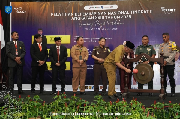 DISKOMINFO TERNATE — Pemerintah Kota (Pemkot) Ternate terus menunjukkan komitmennya dalam memperkuat kapasitas kepemimpinan dan mendorong inovasi birokrasi menuju tata kelola pemerintahan yang efektif, adaptif, dan berdaya saing. Komitmen tersebut diwujudkan melalui peluncuran tiga Proyek Perubahan (Proper) hasil gagasan peserta Pelatihan Kepemimpinan Nasional (PKN) Tingkat II Angkatan XXIII BPSDM Provinsi Jawa Barat Tahun 2025, yang berlangsung di Hotel Bela Ternate, Senin (3/11/2025).